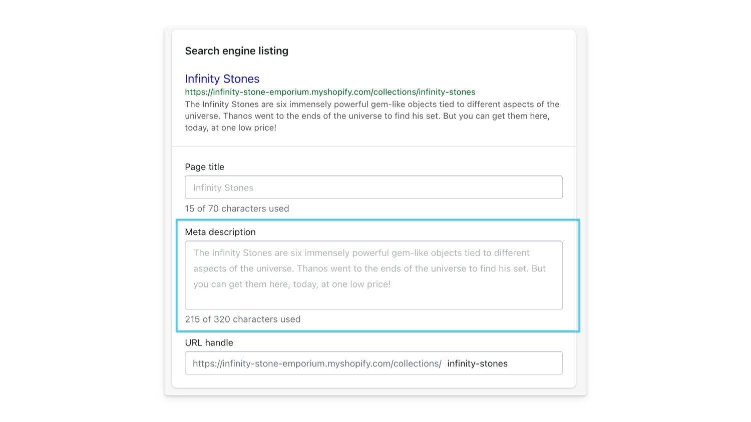 - Update the Meta description listed for your store.