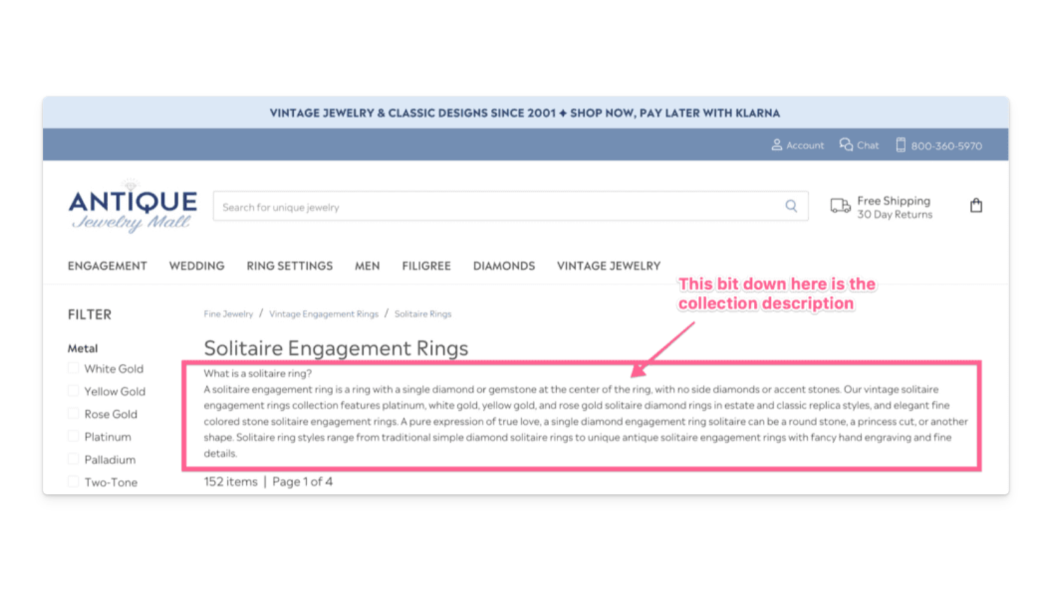 Collection descriptions add a large amount of relevant content to the page, improving the experience for your visitors and giving Google lots more content.