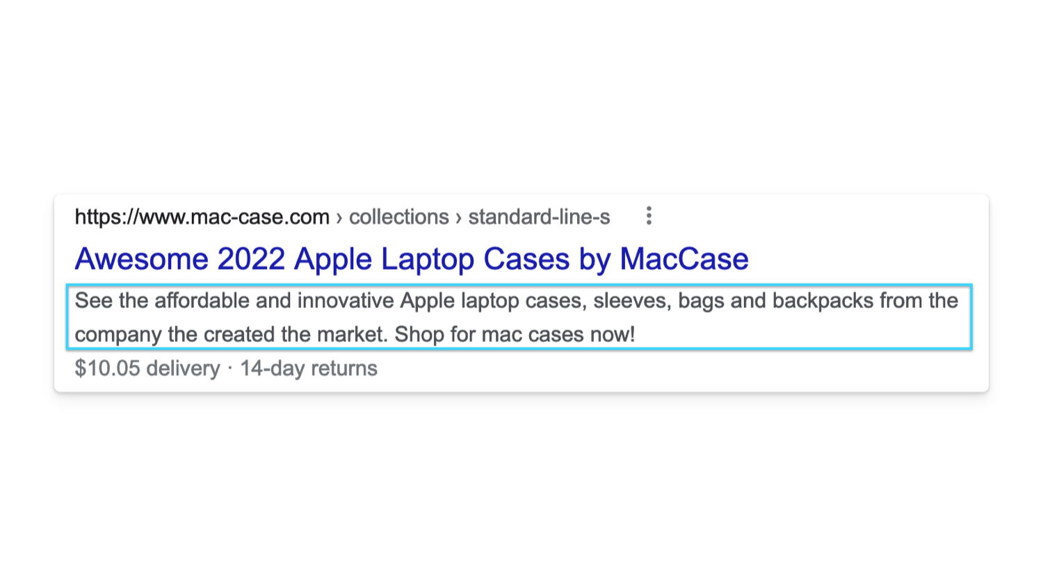 And here’s a Shopify meta description example for a collection from Mac Case, a provider of cases for apple products.